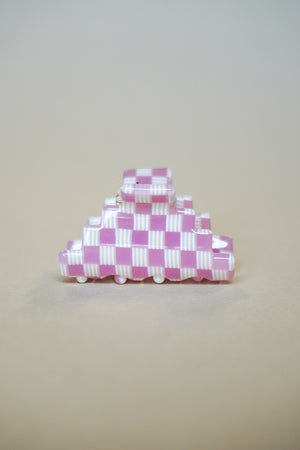 Small Pyramid Hair-Claw in Pink Checkerboard