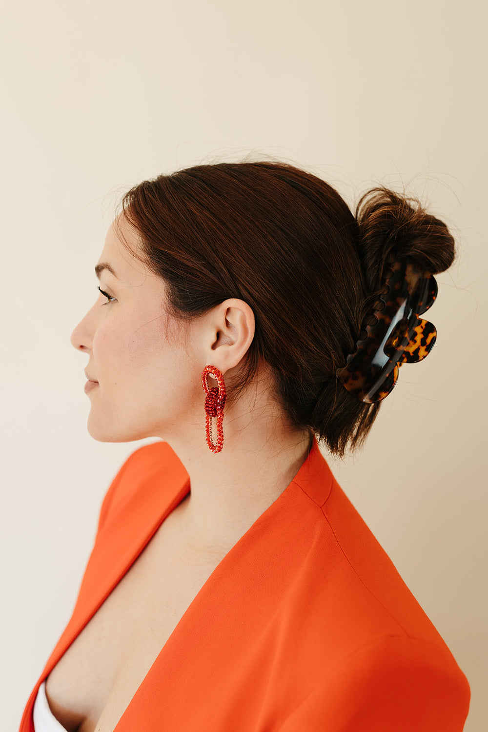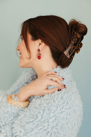 For thick, long hair, the XL Vase Hair-Claw in Tortoise is here! Measuring 5" by 1.5", it's slightly bigger than the original to hold your hair securely all day. Made from durable, eco-friendly cellulose acetate, it combines lasting strength with stylish flair. Grab yours and enjoy that rich, beautiful texture!