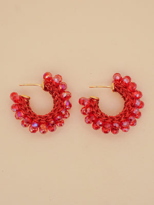 Big, bold, and bursting with texture—these chunky beaded hoops are a party for your ears. Handcrafted with layers of iridescent beads in red tones, they shimmer, sway, and steal the spotlight...