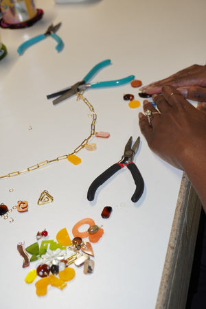 Join us for one of our most popular classes; the Charm Necklace Workshop! This class will be happening on Thursday April 16 from 6-8:30pm. We will be providing all the materials for you to make a one of a kind charm necklace from start to finish. We provide unique charms made with acrylic and natural stones. No experience is needed for this class, just the willingness to have a fun night.