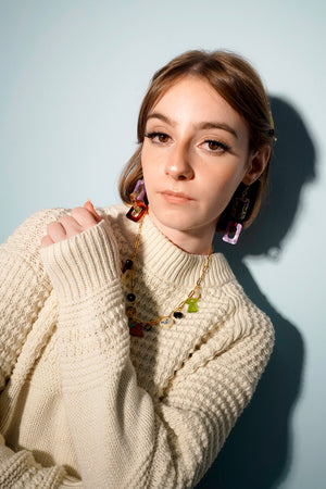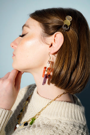 Materials: specialty acrylics, gold-plated stainless steel findings