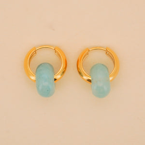 Our classic minimal hoop style available in a new variety of natural stones. A great everyday wear option if you like something smaller with a pop of color. Choose if you want them in gold-plated or stainless steel finish. In the last two years this style has become one of our biggest top-sellers!