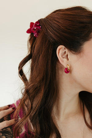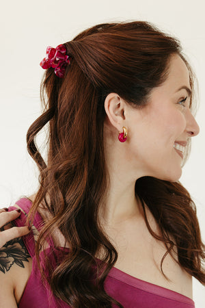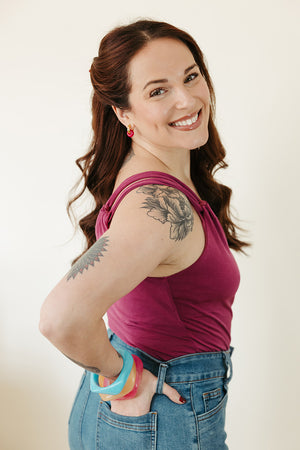A top-selling style time and time again. The Stone Hoop in Fuchsia Jade will be a limited time exclusive for Valentine's day so snag while you can! These are a classic minimal earring style available in over six different types of stones. A great everyday wear option if you like something smaller with a pop of color and endless ways to style them. Choose if you want them in our gold-plated or stainless steel metal hoop.