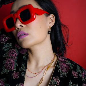 Simple and elegant gold-plated square hoops. Perfect to wear on their own for a minimal look or pop in a set of charms to add some color.