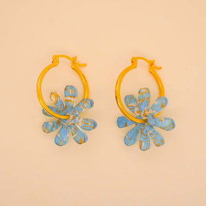 Shimmer like a seaside daydream with these cerulean shell flower hoops! They have the perfect accents of gold and marine-like acrylic texture—made for breezy vibes and sunny adventures. Select if you...