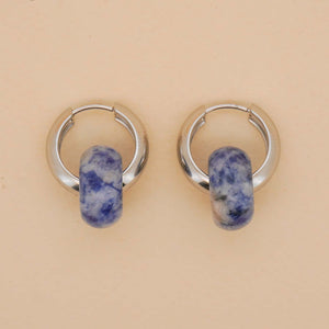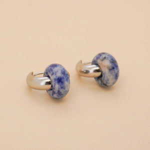 Our classic minimal hoop style available in a new variety of natural stones. A great everyday wear option if you like something smaller with a pop of color. Choose if you want them in gold-plated or stainless steel finish. In the last two years this style has become one of our biggest top-sellers!