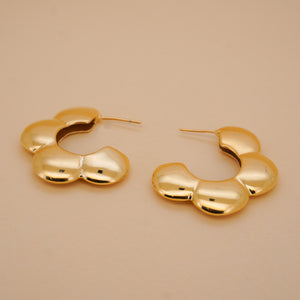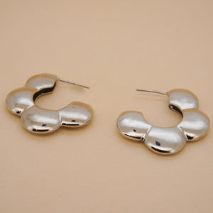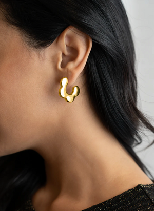 Soft curves meet playful petals. The Plush Flower Hoops put a fresh, modern spin on a classic silhouette with their pillowy, flower-shaped design. Available in gold-filled brass or rhodium finish, these lightweight hoops deliver bold shine and a whimsical touch that instantly brightens any look. Wear them solo for a subtle statement or pair them with your favorite studs for a layered, fun ear stack.