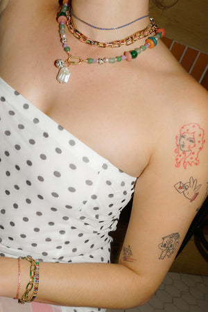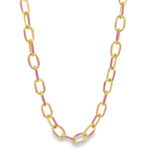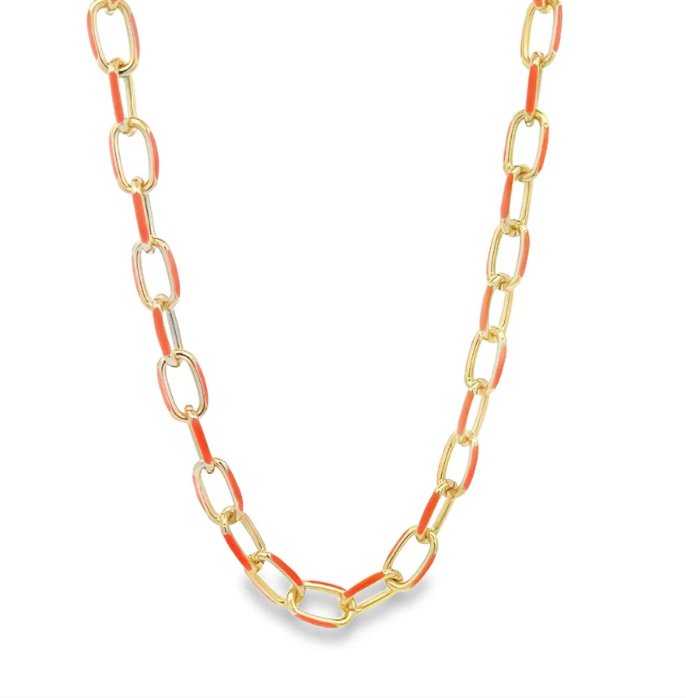 Colorful, versatile, and endlessly fun—this enamel chain necklace is designed to shine on its own or serve as the perfect base for your favorite charms. Available in seven vibrant colors, each link is detailed with glossy enamel for a playful pop against the warm gold. Whether you keep it minimal or load it up with charms, this chain is made for mixing, matching, and layering. Find the matching bracelet for a perfect set.