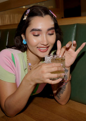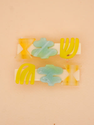 These mobile hair clips come in four fun styles, each set with unique shapes and textures. Each clip has its own vibe, so you can pick which set matches your style perfectly. Note this is a medium size clip and it will hold more hair than our regular hair-clips. This set will include two of the same style hair-clips. Purchase more than one hair accessory and automatically get $5 OFF.