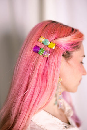 These mobile hair clips come in four fun styles, each set with unique shapes and textures. Each clip has its own vibe, so you can pick which set matches your style...