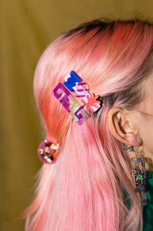 These mobile hair clips come in four fun styles, each set with unique shapes and textures. Each clip has its own vibe, so you can pick which set matches your style perfectly. Note this is a medium size clip and it will hold more hair than our regular hair-clips. This set will include two of the same style hair-clips. Purchase more than one hair accessory and automatically get $5 OFF.