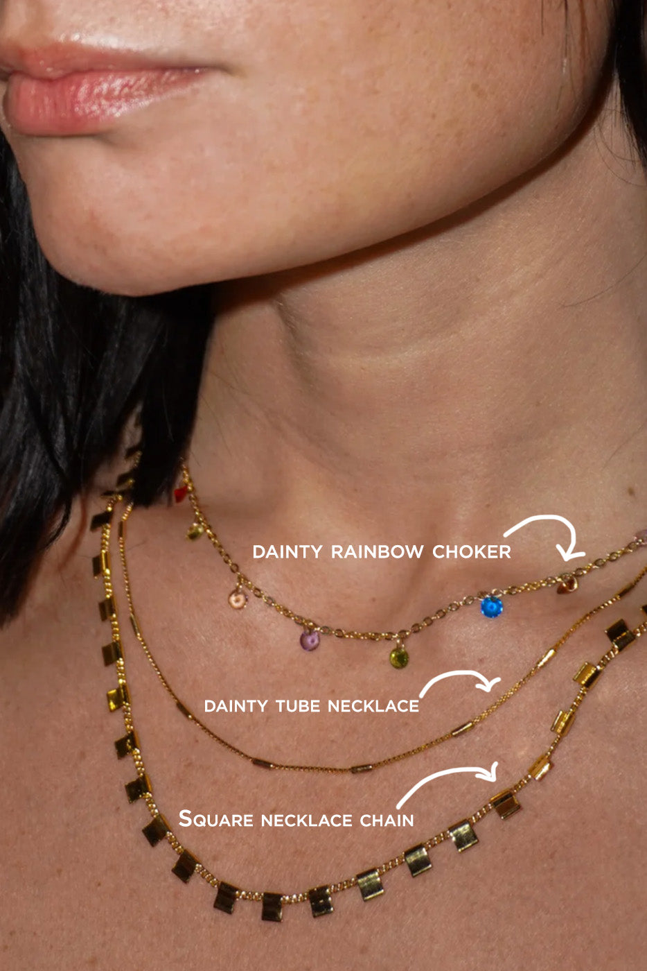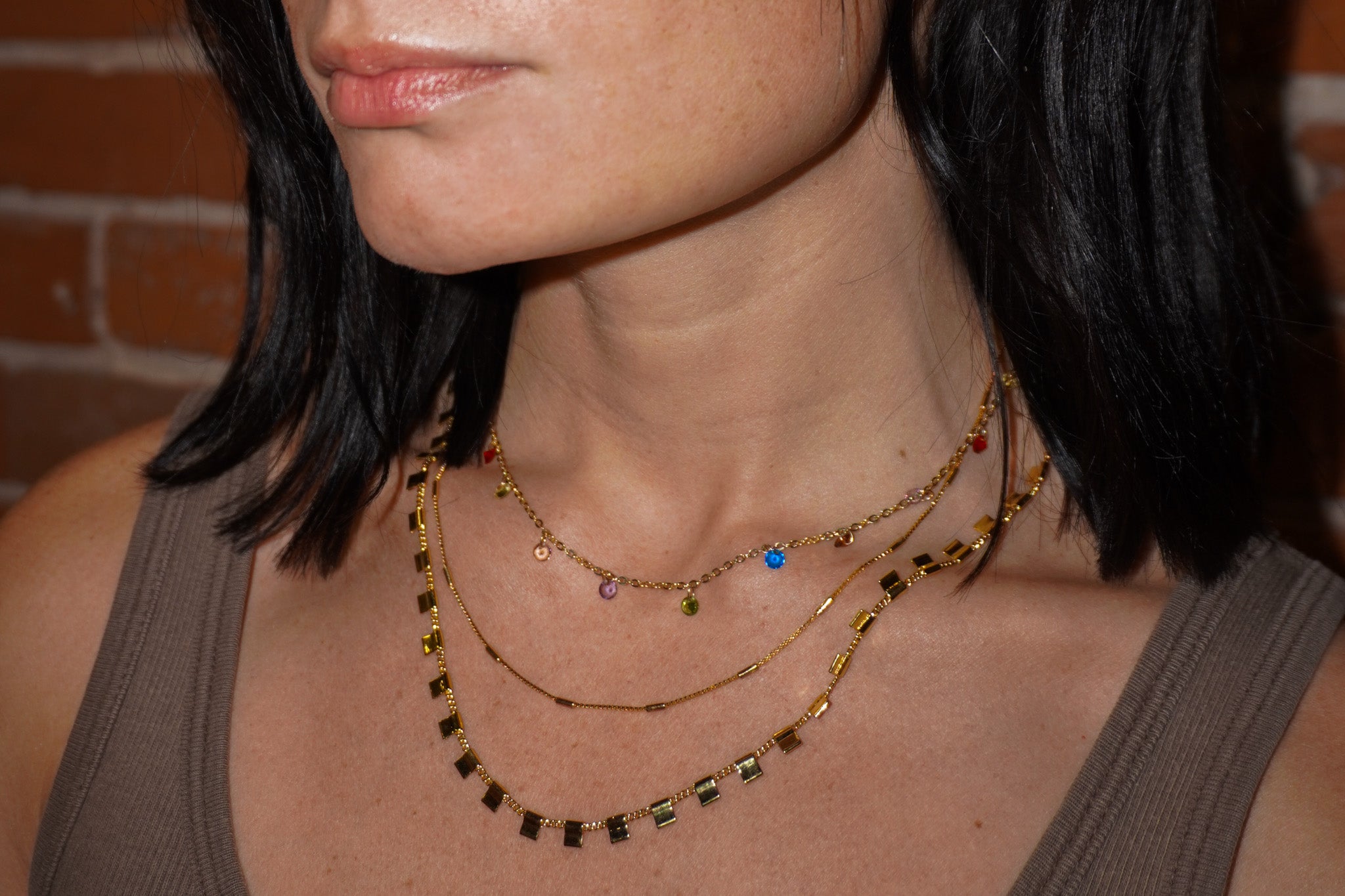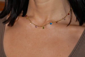 This gold-filled dainty colorful choker features tiny crystals that add the perfect hint of sparkle. Dainty, lightweight, and effortless, it layers beautifully or adds a delicate statement all on its own—your new everyday glow-up piece. Perfect to wear on it's own or layer with other pieces.