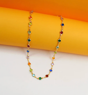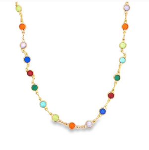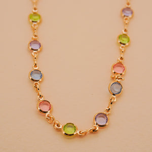 Sweet, soft, and oh-so-dreamy, this pastel gem-link necklace is a little ray of wearable joy. Each bezel-set stone brings a subtle pop of color that feels like a magical sunset, a...