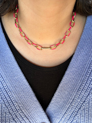 Colorful, versatile, and endlessly fun—this enamel chain necklace is designed to shine on its own or serve as the perfect base for your favorite charms. Available in seven vibrant colors, each link is detailed with glossy enamel for a playful pop against the warm gold. Whether you keep it minimal or load it up with charms, this chain is made for mixing, matching, and layering. Find the matching bracelet for a perfect set.
