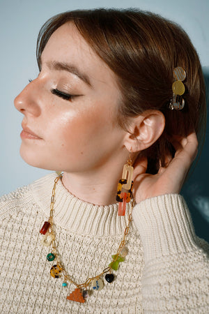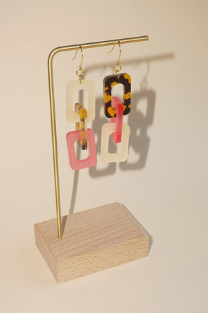 This fresh take on a classic link style combines soft blush tones, frosted citrus accents, and a bold tortoiseshell pattern for a look that’s both fierce and flirty. Made from lightweight acrylic, these earrings are designed for all-day comfort with a stylish edge, and the gold-plated hooks add a little touch of elegance. Perfect for adding a bit of fun and texture to any outfit, these earrings are a must for your adventurous side while embracing the feminine.