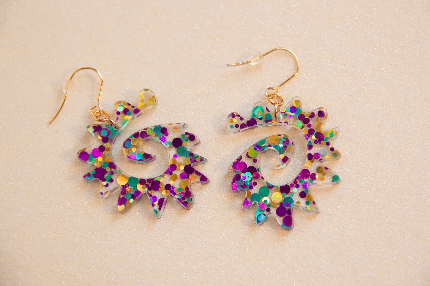 Materials: dotted glitter acrylic, gold-plated stainless steel findings