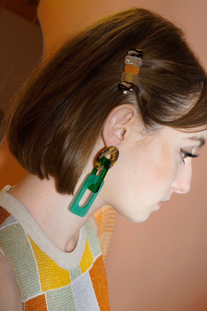 Get ready to go wild these earrings! With bold pops of jungle-green acrylic and a fierce tortoiseshell pattern, these earrings are all about fun and making a statement. Super lightweight, they're perfect for spicing up your look without weighing you down. Add a bit of adventure to any outfit, and let the earrings speak for themselves. Perfect for when you're feeling fierce and fab! Great for the office or going on a girls night out.