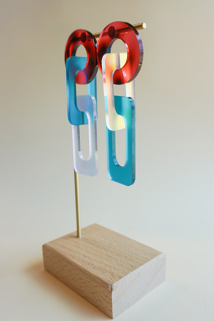 Materials: specialty acrylics, gold-plated stainless steel findings