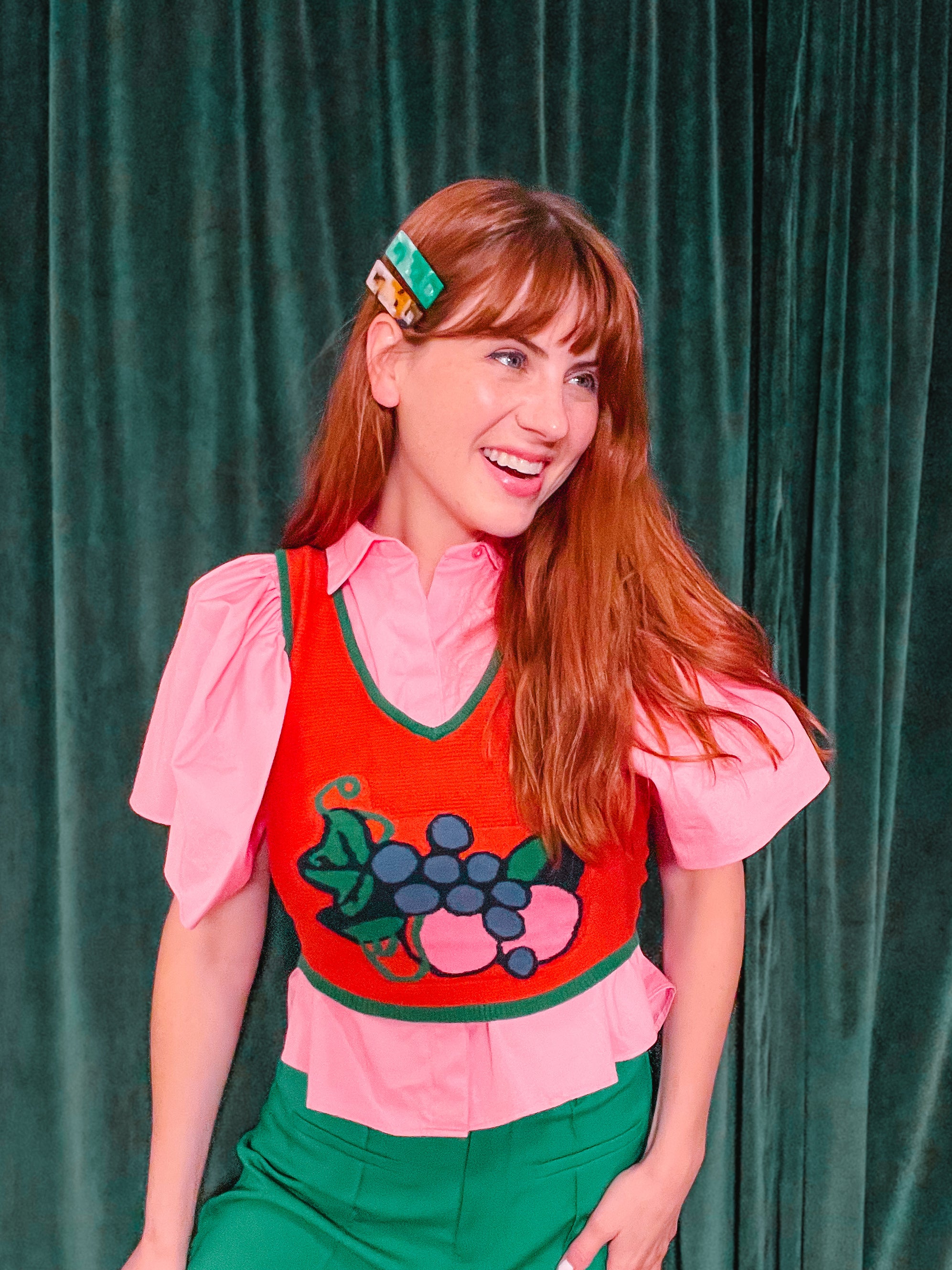 The Greca design has become a staple for our brand. This hair-clip is inspired after the decorative geometric pattern found in Mayan architecture. You might recognize this pattern across many of the products we have created. These clips have two textures that are contrasting or complimentary of each other. Each clip is made out of acetate and metal. It measures 2.25” x .75.”