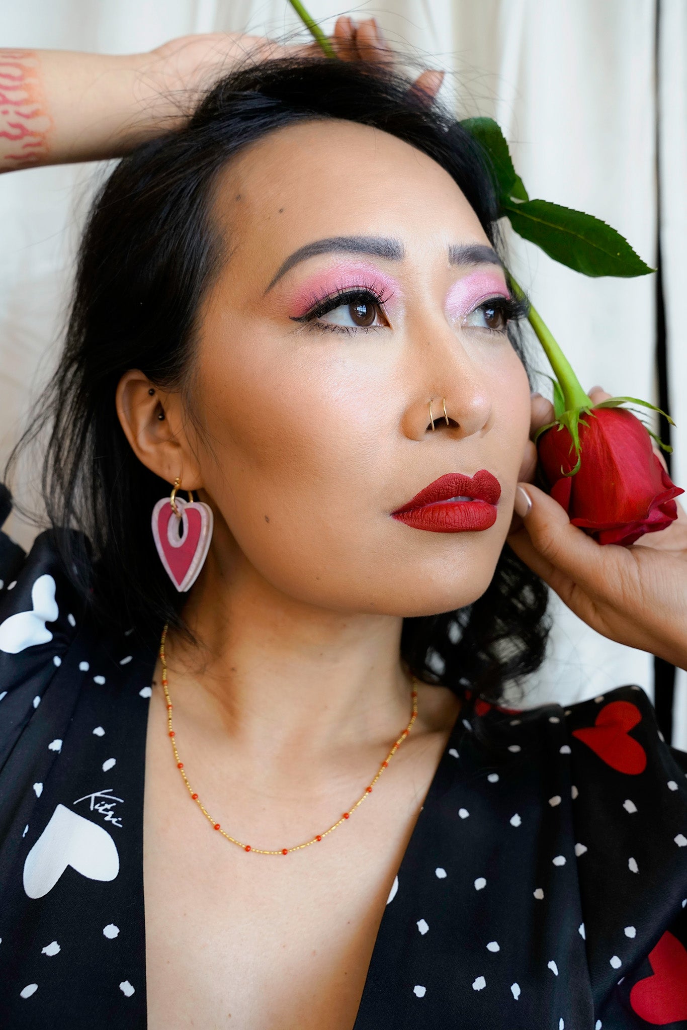 The Heart hoops have been carefully crafted by layering different tones and textures of acrylic. Each heart has been designed to fit the hoop that intersect between the cut out in the heart. The heart shape will hang nicely from your ear. Note that the hoop on this style are slightly bigger than our standard hoop since so if you have a bigger ear lobe we do recommend you purchase these with hoops.