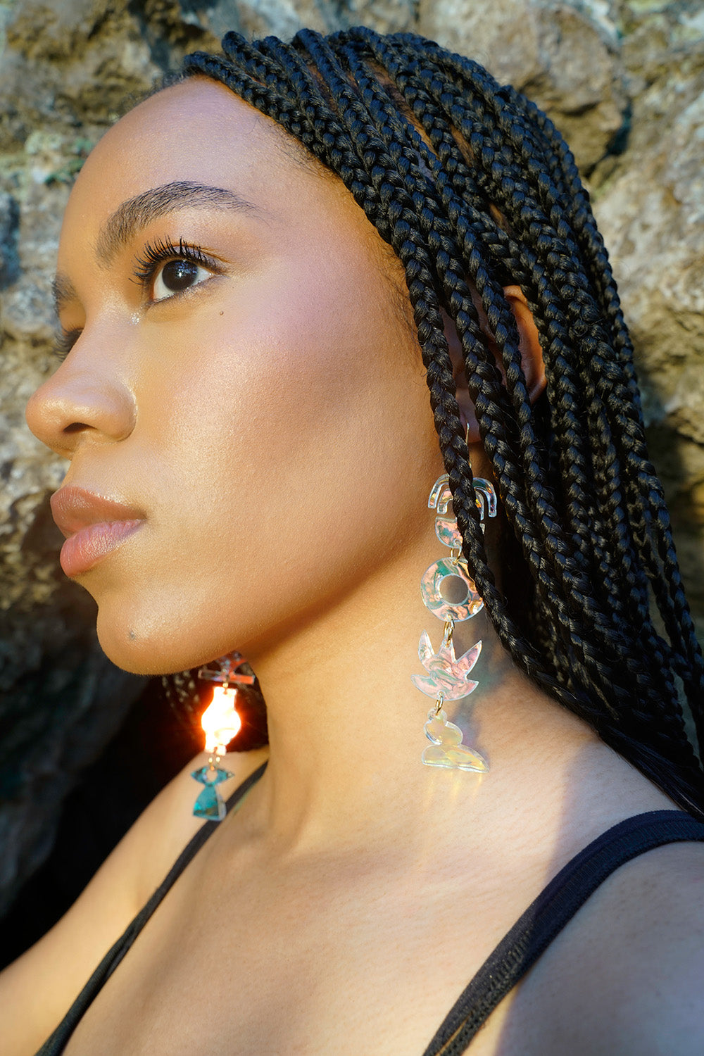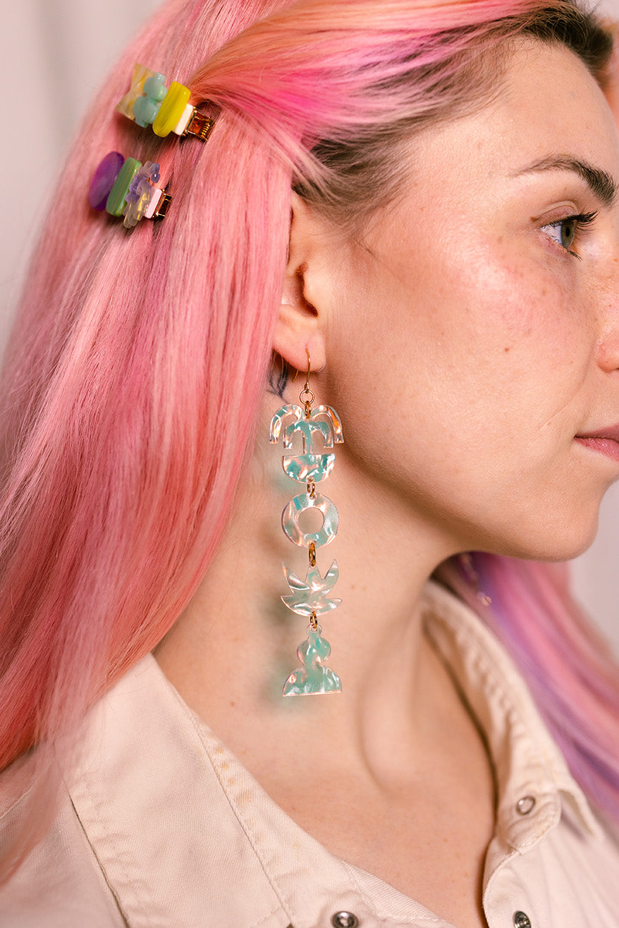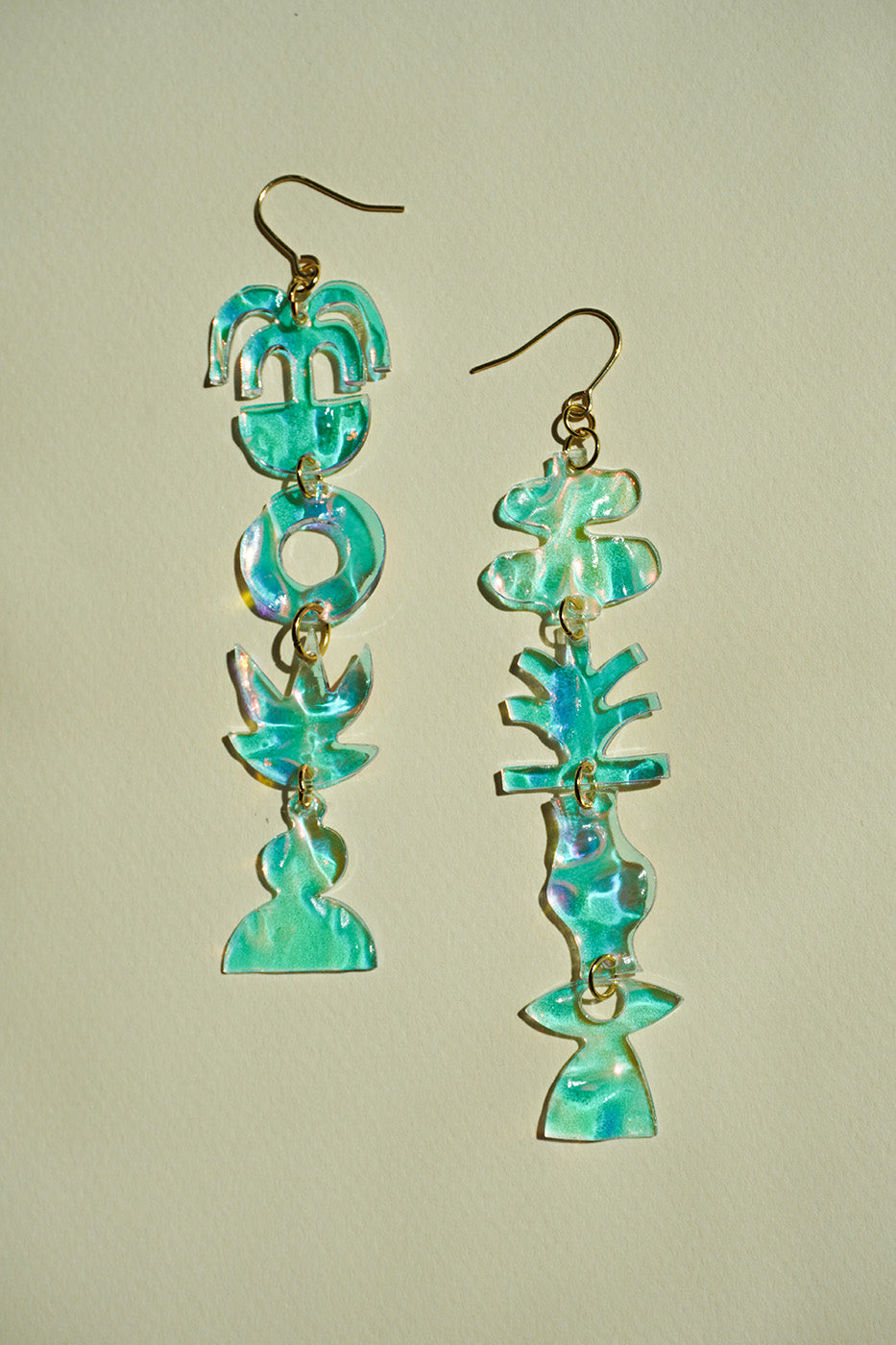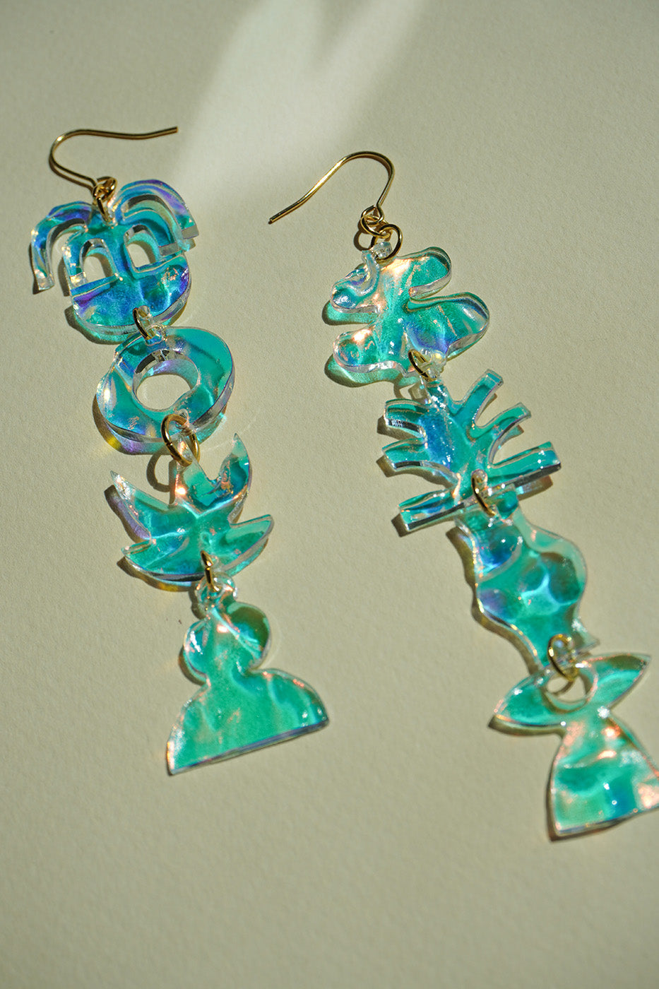 Revamped with a mix of fresh shapes and textures, the Mobile earrings add a playful twist to your outfit. The ripple pattern creates the illusion of mirrored water, while the iridescent tones give off a captivating glow. These dangle earrings are truly perfect!