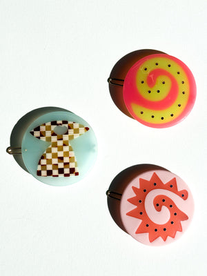 These clips are perfect for adding a playful touch to your hairstyle! They're designed to hold smaller sections of hair and come in three unique shapes, adding a fun detail to your look. These styles are equipped with a ball and clasp system, and the Caracol and Espiral designs feature inlay rhinestones for a little extra sparkle. You'll receive a $5 discount on your order when you purchase more than one.