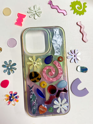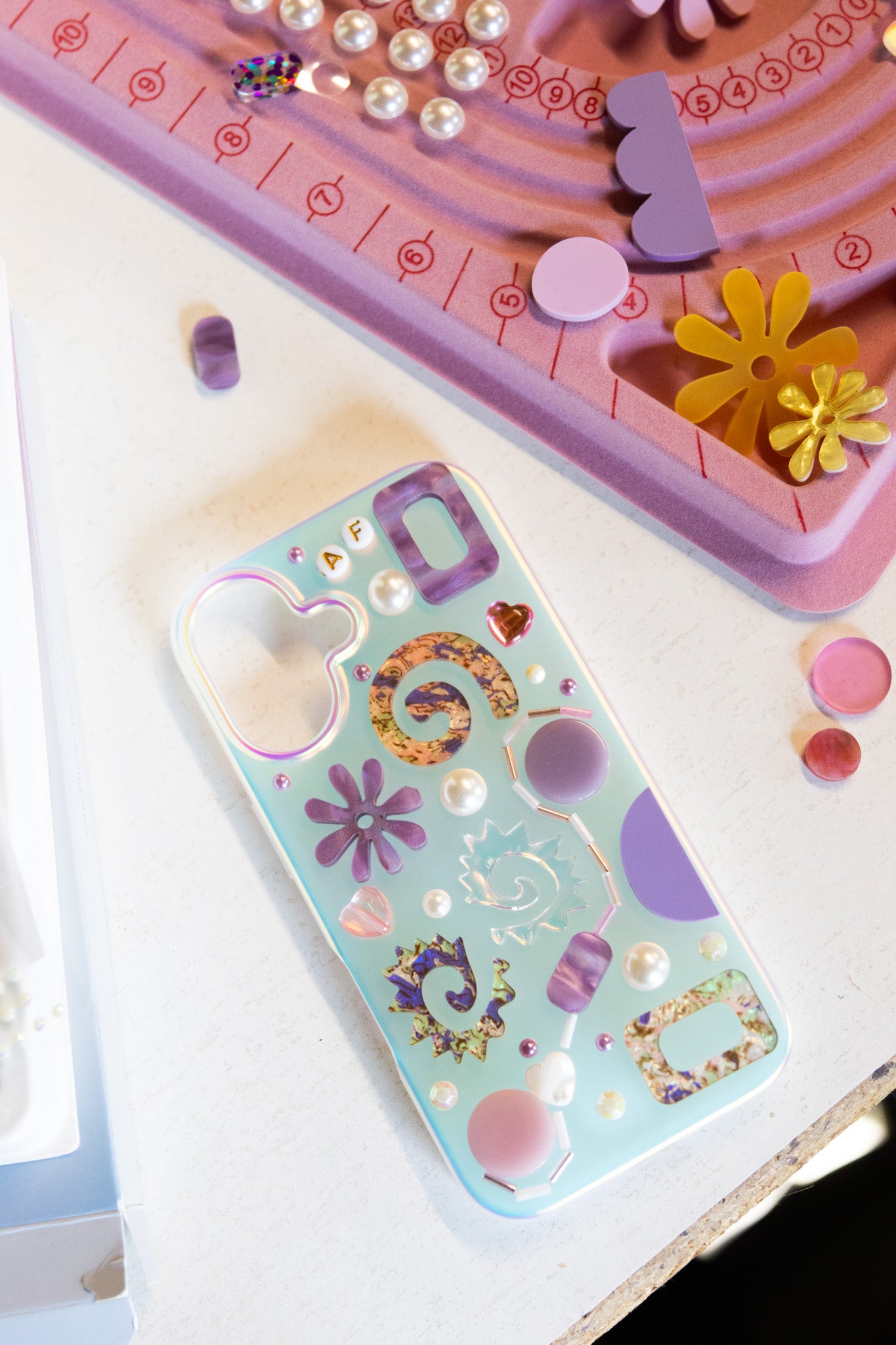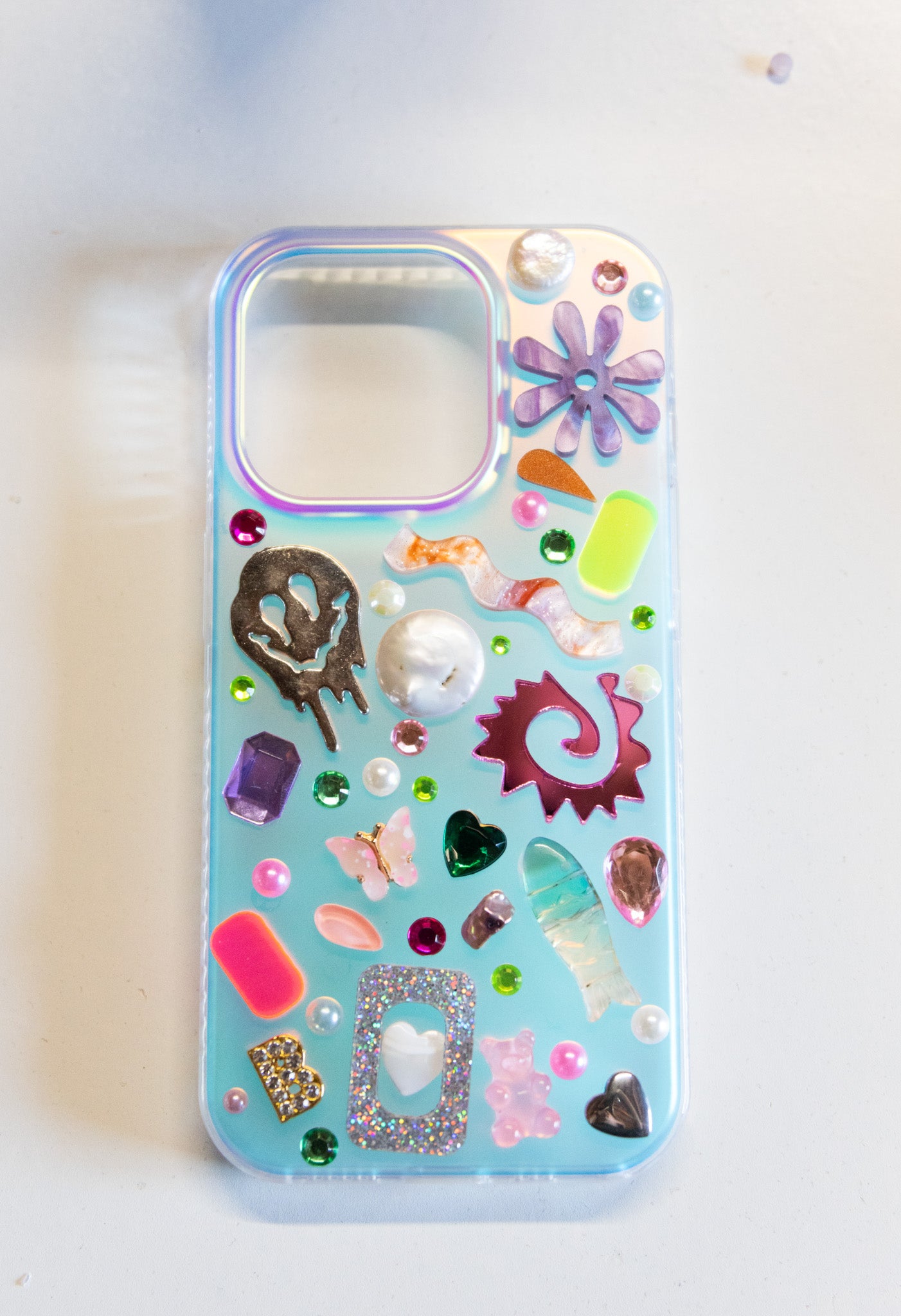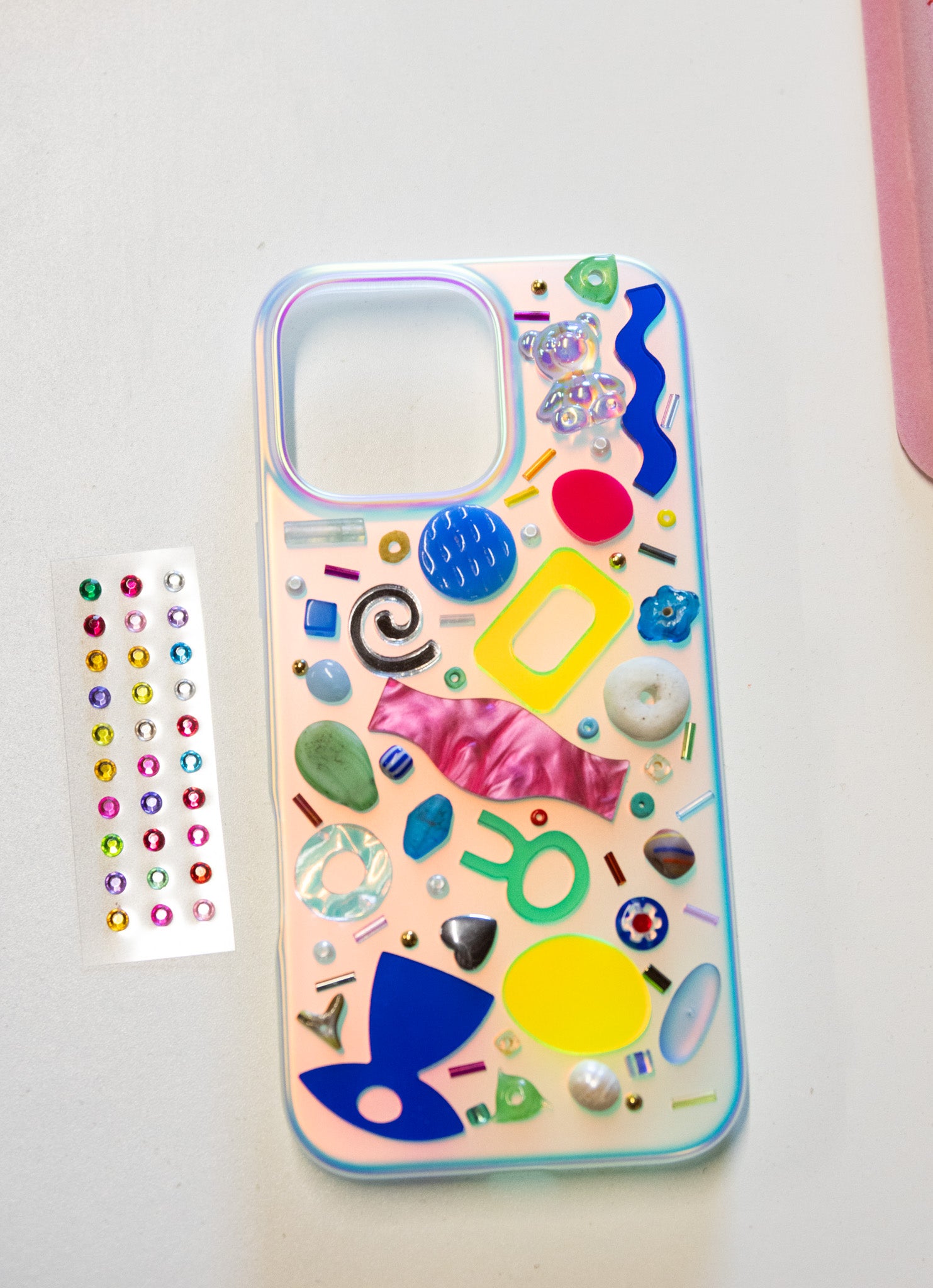 Give our first Phone Case & Strap workshop a try! Why wouldn't you want a phone case that matches your personality?! During this class you will get to decorate your own phone case and create a matching strap for it. We will provide acrylic shapes, beads, rhinestones, chain and many other components for you to use. We will pour the resin for each case separately and you will be able to pick up/ship the case in the next following days. Resin is toxic so we want to make sure we don't expose participants to it. There is no experience needed for this class, but we do ask that you sign up as early as you can so we can order cases in a timely manner. Once you purchase your ticket, we will email or text you you asking for your ideal phone case size and finish which options are Iridescent or clear (see images for reference).