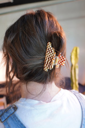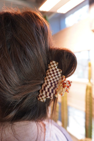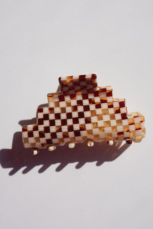 Home Pyramid Hair-Claw in Ivory Checkerboard
