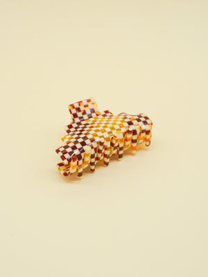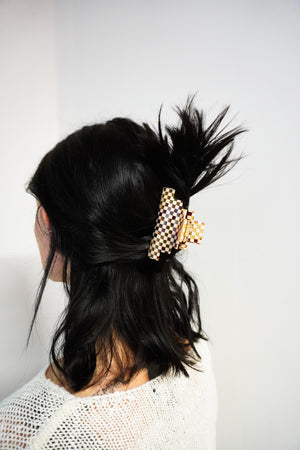 Pyramid Hair-Claw in Ivory Checkerboard
