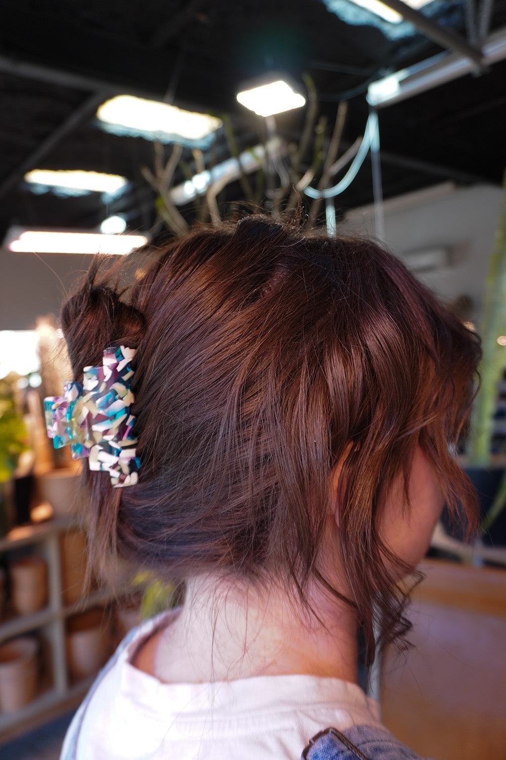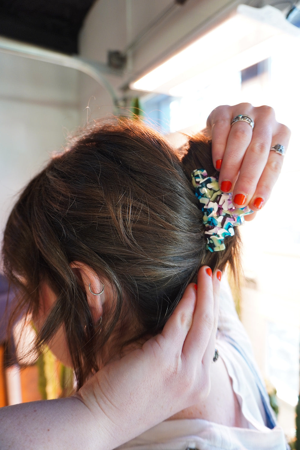 This medium size hair-claw will hold your hair up really well in a bun or in a half bun. Ideal for those with medium or long hair length