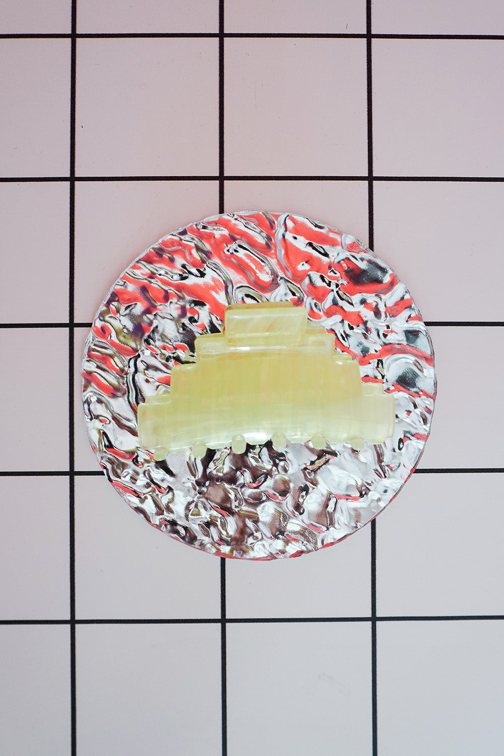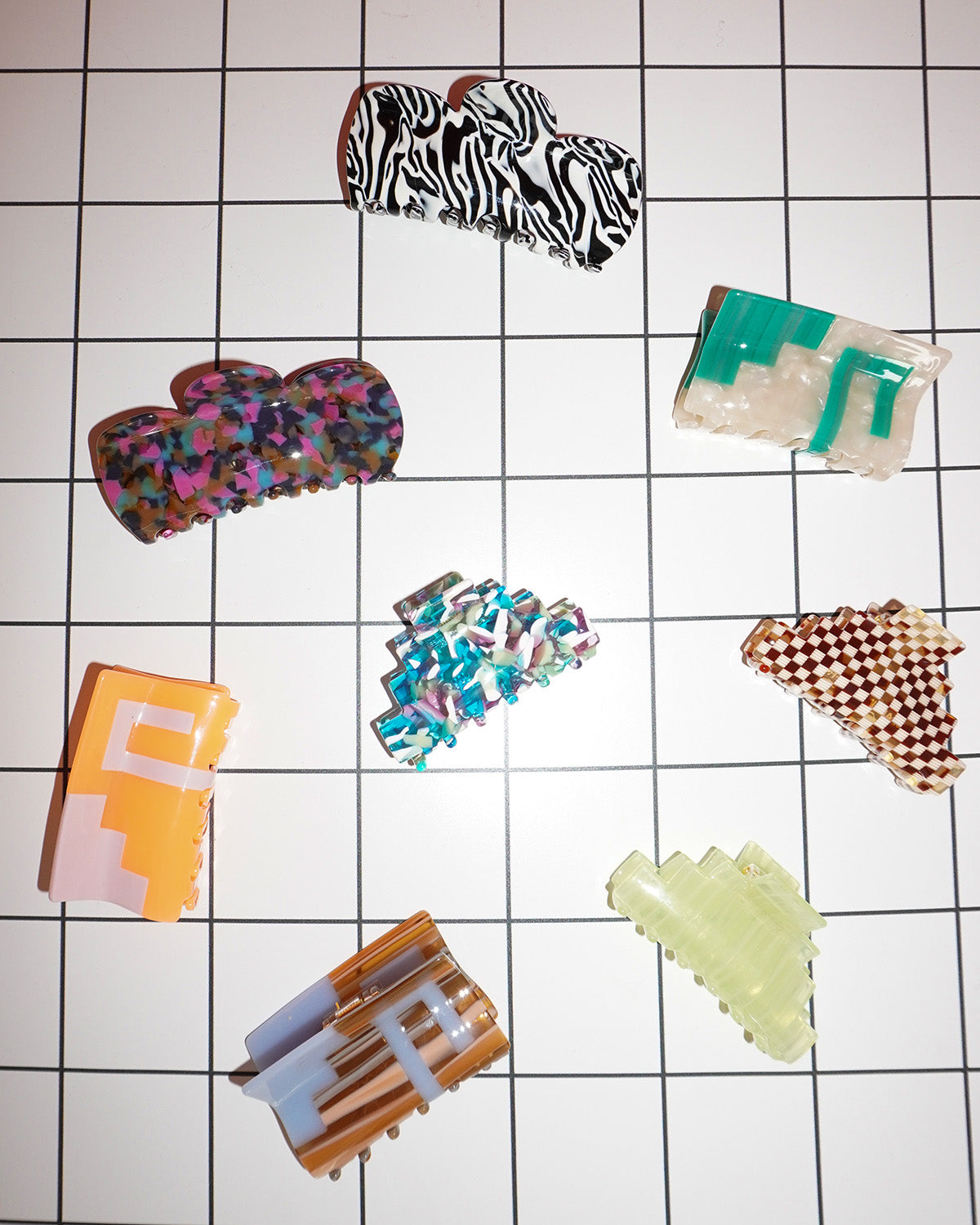 The pyramid claw is very much inspired by the Mayan archeological sites that surround the peninsula area in Mexico. I wanted each one of the claw designs to represent different aspects of Mexican culture that have influenced my work. This claw comes in three different textures; the checkerboard, green jelly and confetti