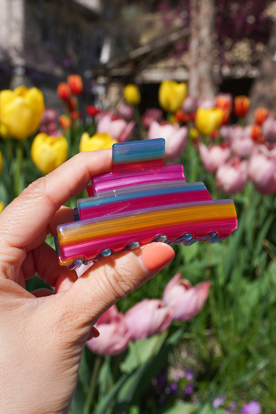 Pyramid Hair-Claw in Sunset Stripes