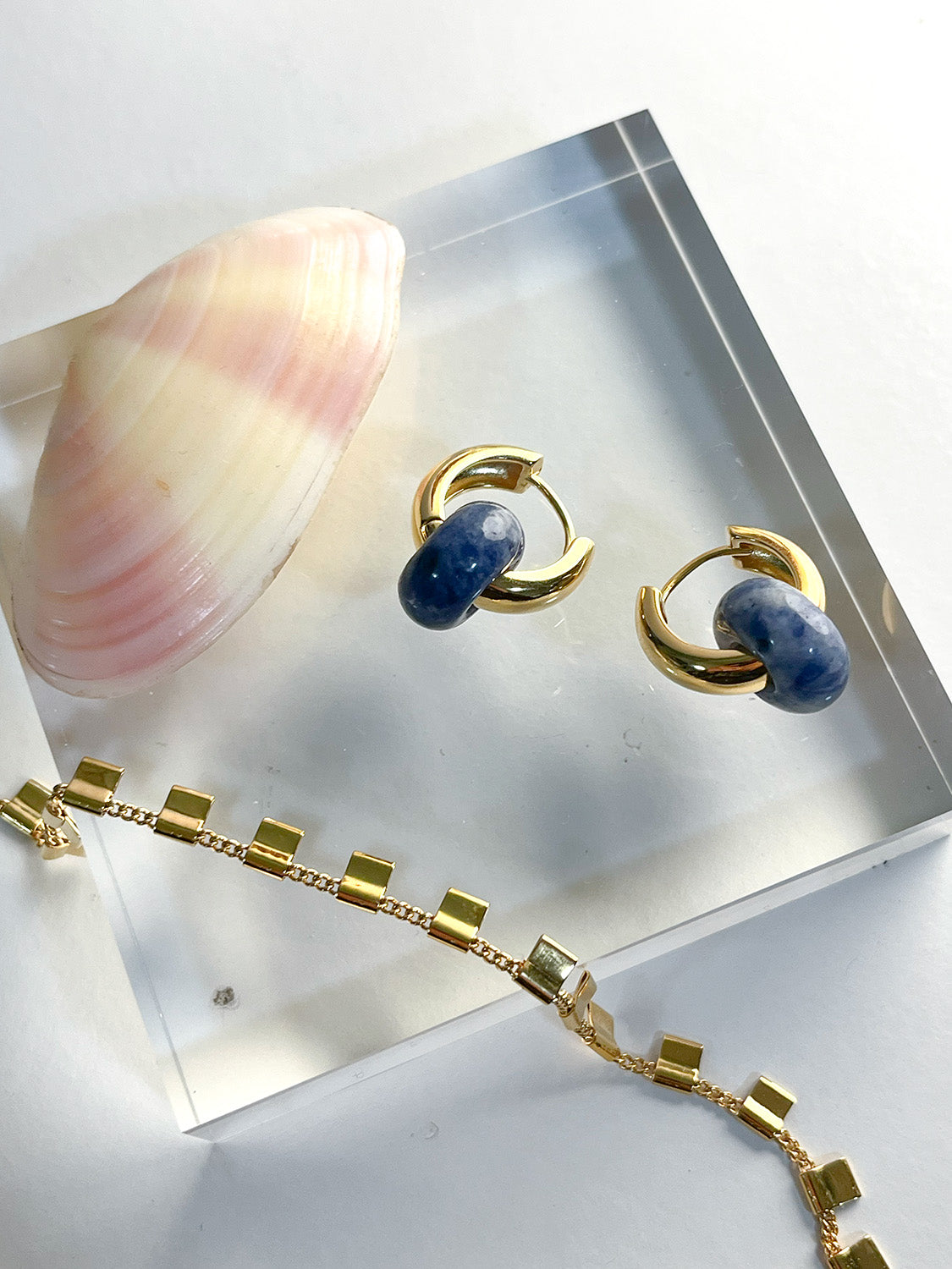 Our classic minimal hoop style available in a new variety of natural stones. A great everyday wear option if you like something smaller with a pop of color. Choose if you want them with our staple chunky hoop or just as the set of charms. In the last two years this style has become one of our biggest top-sellers!