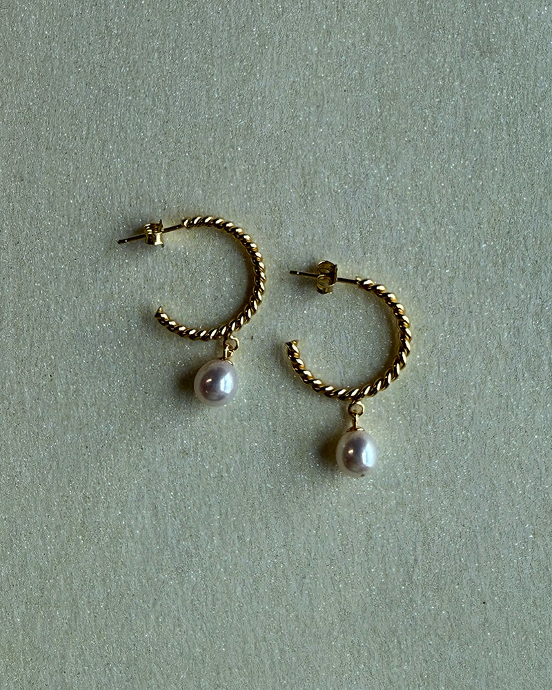 Home Silver Braided Hoop Earrings with Pearl