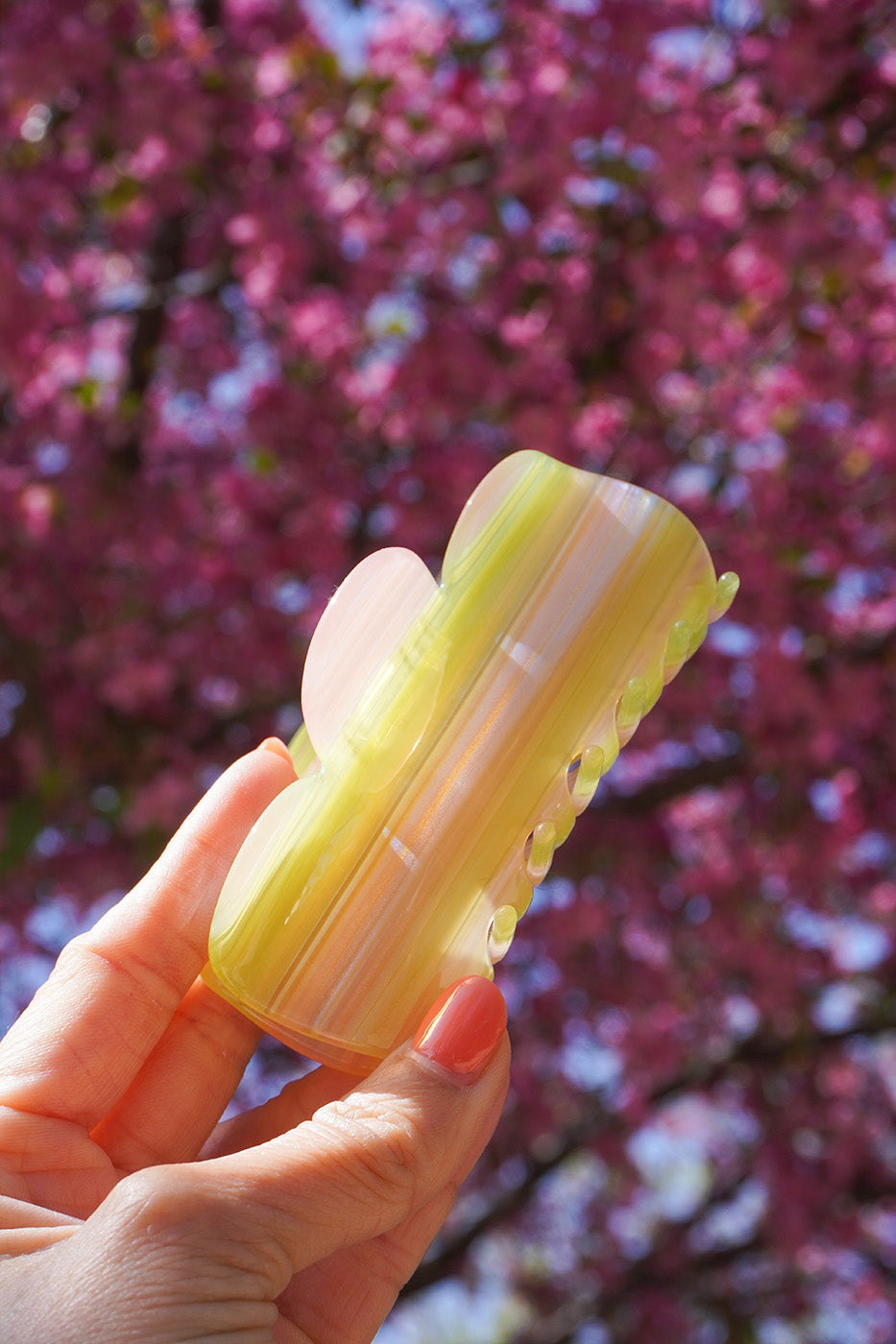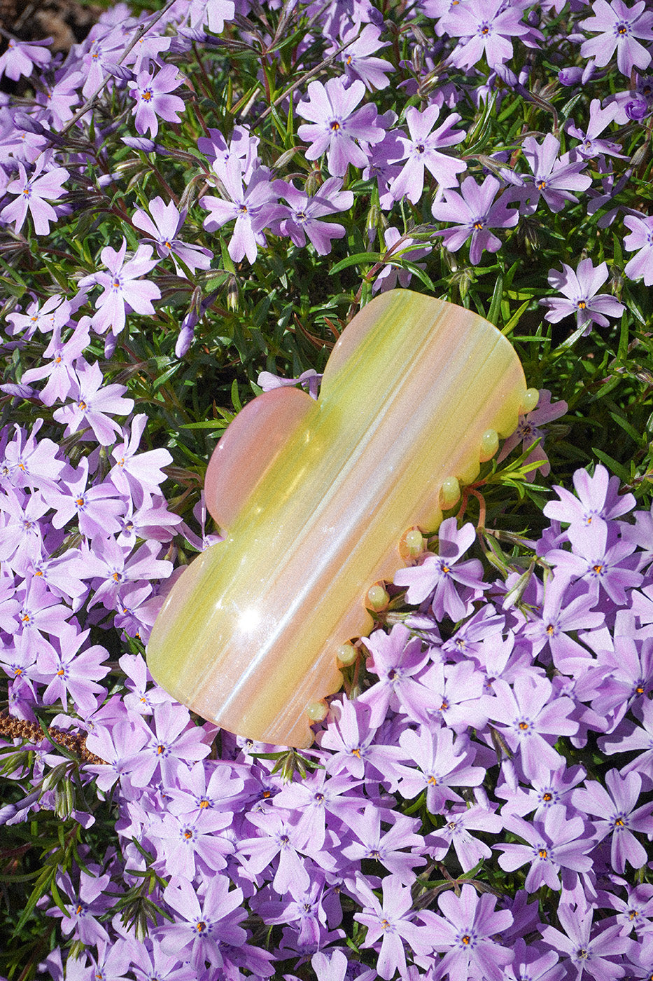 The Vase Hair-Claw in Pastel Dream is inspired by the smooth shapes of Mexican ceramic vases. Perfect for thick or long hair, this bigger claw features soft pastel stripes with a shiny, iridescent finish that sparkles in the light. Stylish and fun, it’s a playful way to keep your hair perfectly in place!